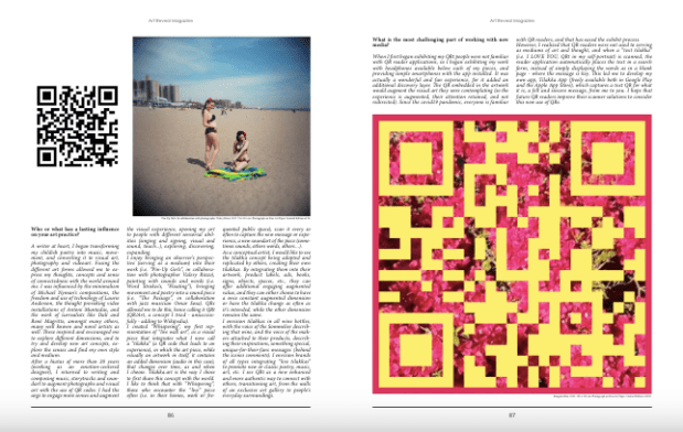 In 2016, I began integrating voice, sounds and music in visual art, design, print, objects and spaces, through embedded QR codes, to create deeper, more emotional, sensorial and authentic connections. Learn more.